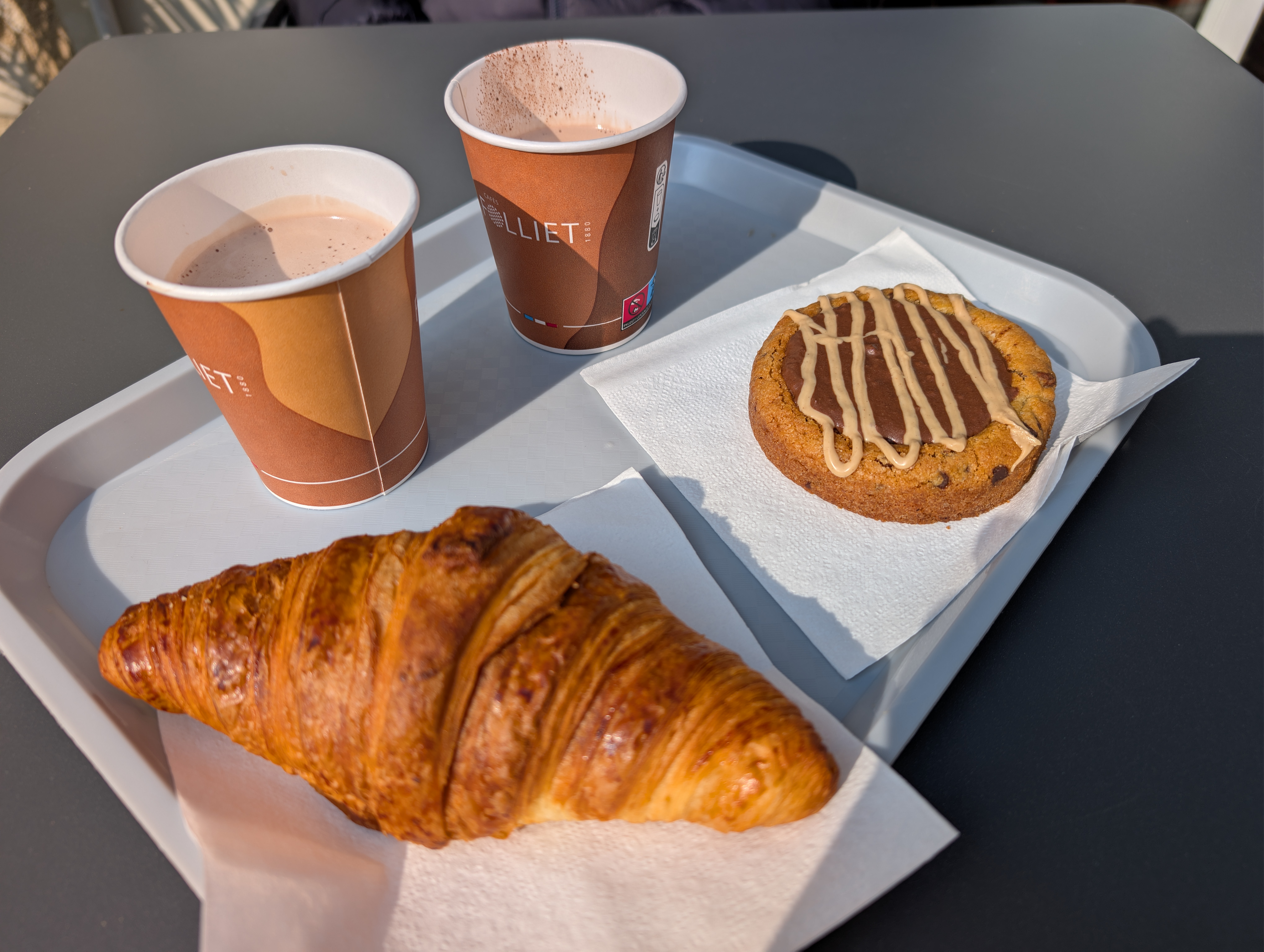 After our visit, we had hot chocolates and treats at a nearby café. It had a poor rating, but as we’ve come to discover in France, the Google maps ratings can be deceiving. My croissant was perfect and Dylan hasn’t stopped wishing to have that cookie again.