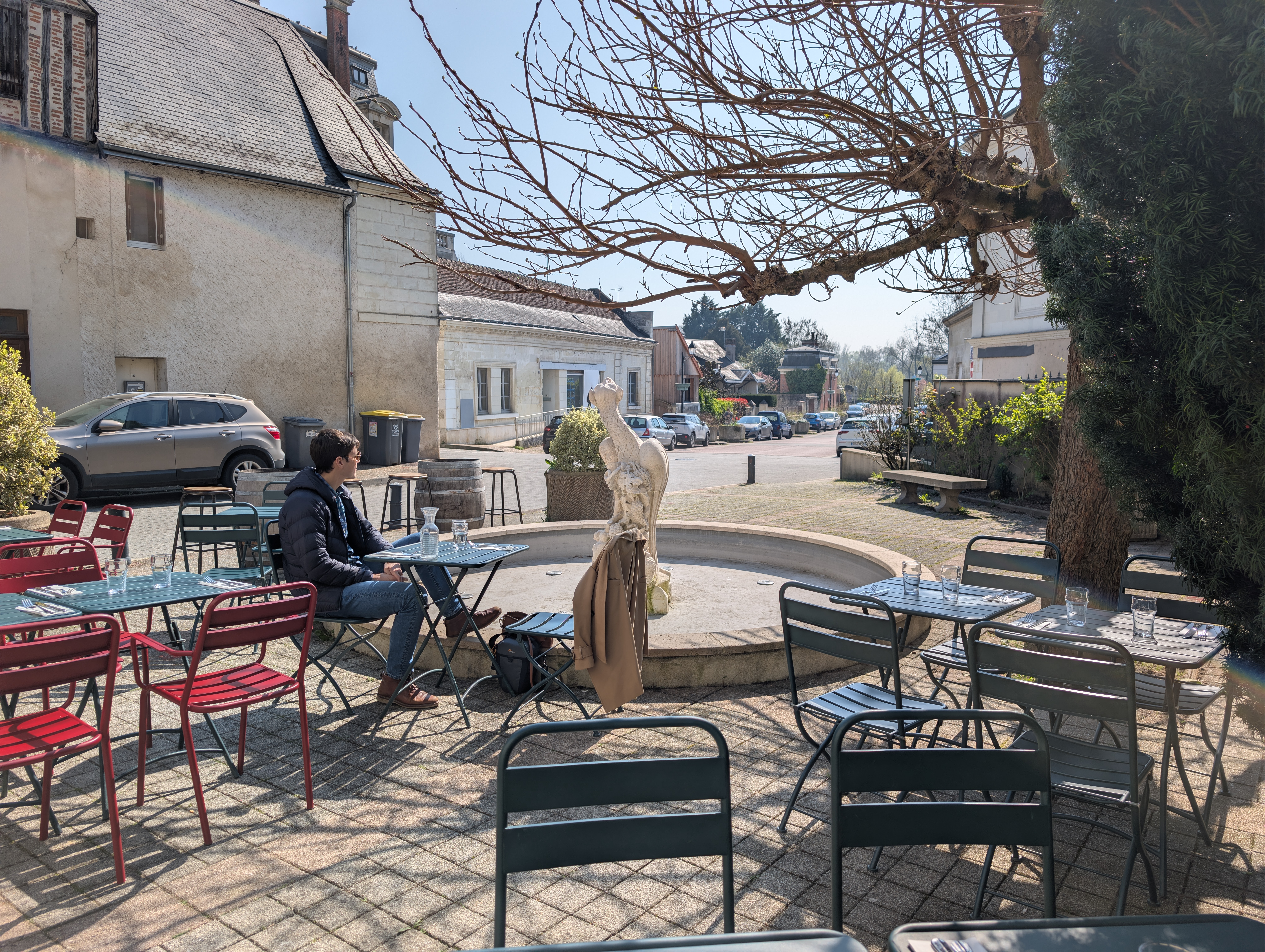 Afterwards, we drove to the little commune of Rochecorbon and had lunch at Café Corbon, which had been recommended to us at Domaine Le Capitaine. Once more making the most of the fine spring weather, we were seated in the courtyard, enjoying the sunshine and a delicious meal, surrounded by locals. We had some hummus with bread and a little toasted cheese sandwich to start and then shared a main course of roasted duck, which we agreed was probably the best duck we’ve ever eaten.