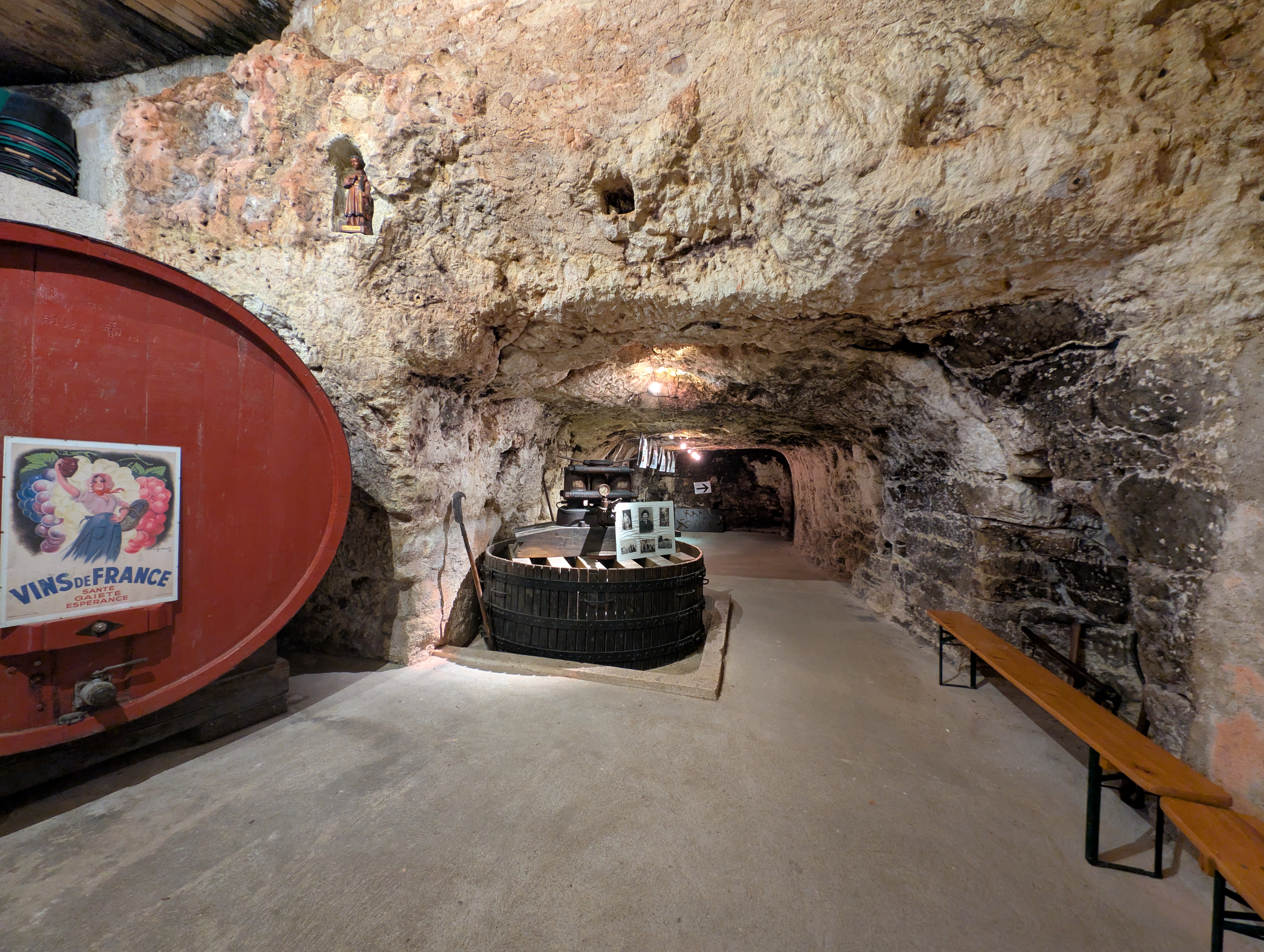 But we were, and we really enjoyed our tasting of the tiny appellation’s only wine: chenin blanc. It is made as either sec (dry), demi-sec (semi-dry), doux (sweet), or effervescent (sparkling). We tasted his father’s wine as well as some that he was making himself and it was all excellent. The tasting was free, but we bought a bottle of sparkling at the end to take back to Paris with us.